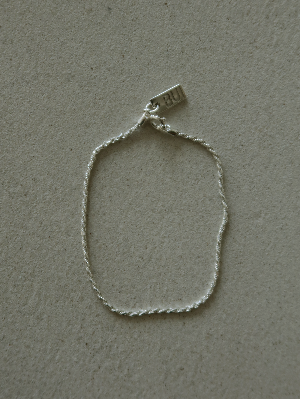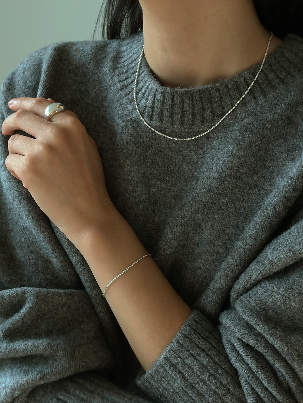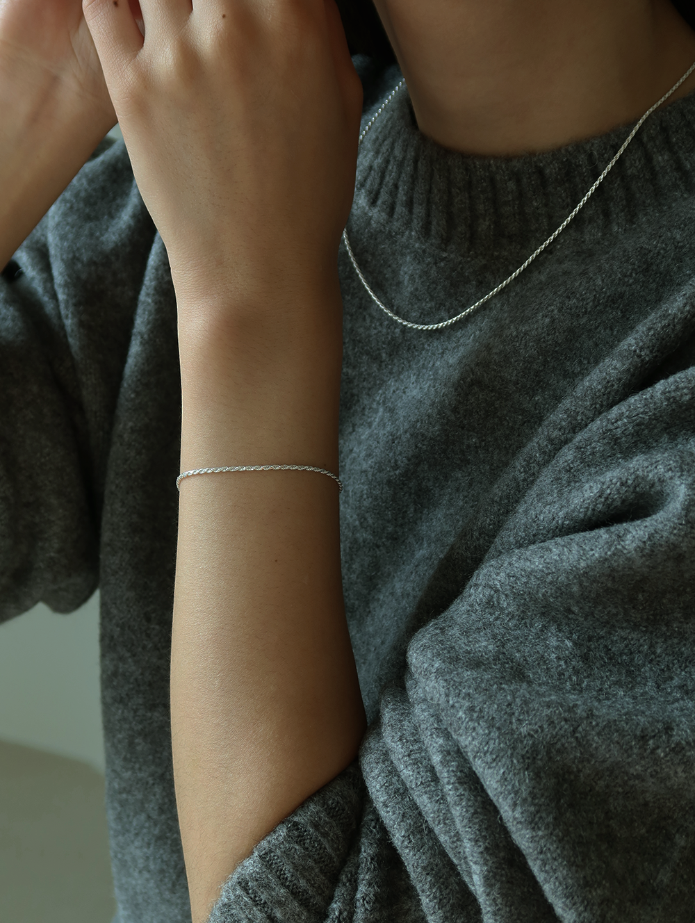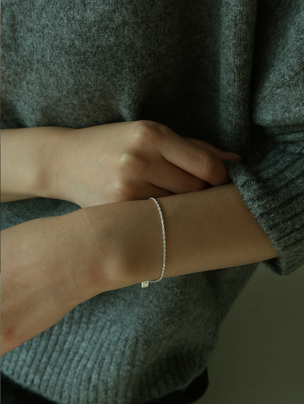 고급스러운 꼬임 텍스쳐가 특징인 이태리 루프 체인 브레이슬릿. 은은한 광택감으로 다양한 스타일링에 활용도 높은 제품이며 브랜드 각인 참이 행잉되어 있습니다.