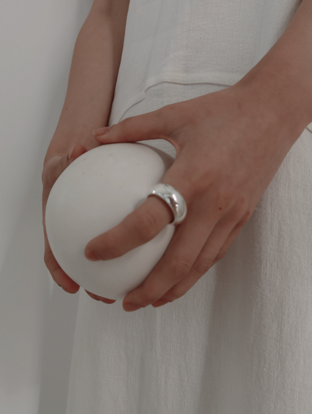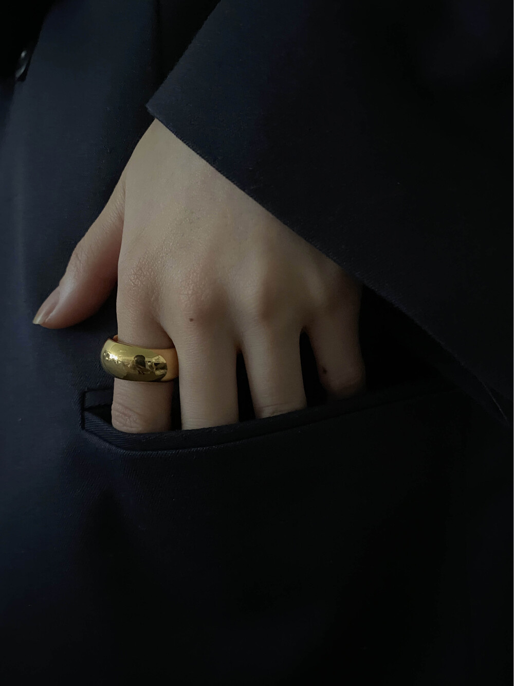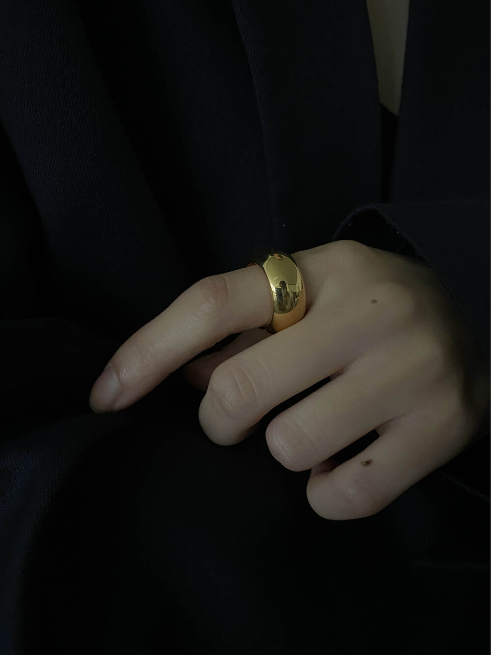 클래식한 볼드 링입니다. 내, 외관에 작은 홀을 내어 제품의 무게를 비워낸 할로우 공법으로 제작되었습니다. 반지의 안쪽에 브랜드 각인을 진행하였습니다.