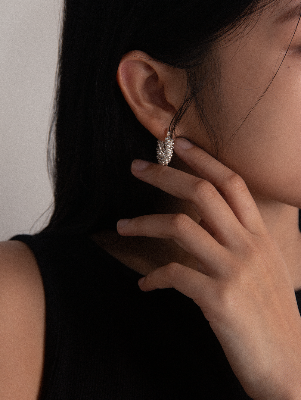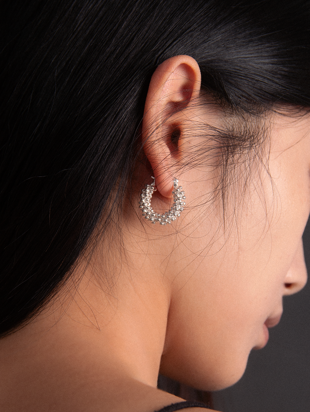 만개된 꽃을 모티브로 제작된 이어링. 존재감이 확실한 스케일과 디자인으로 다양한 아웃핏에 함께할 수 있는 피스.
