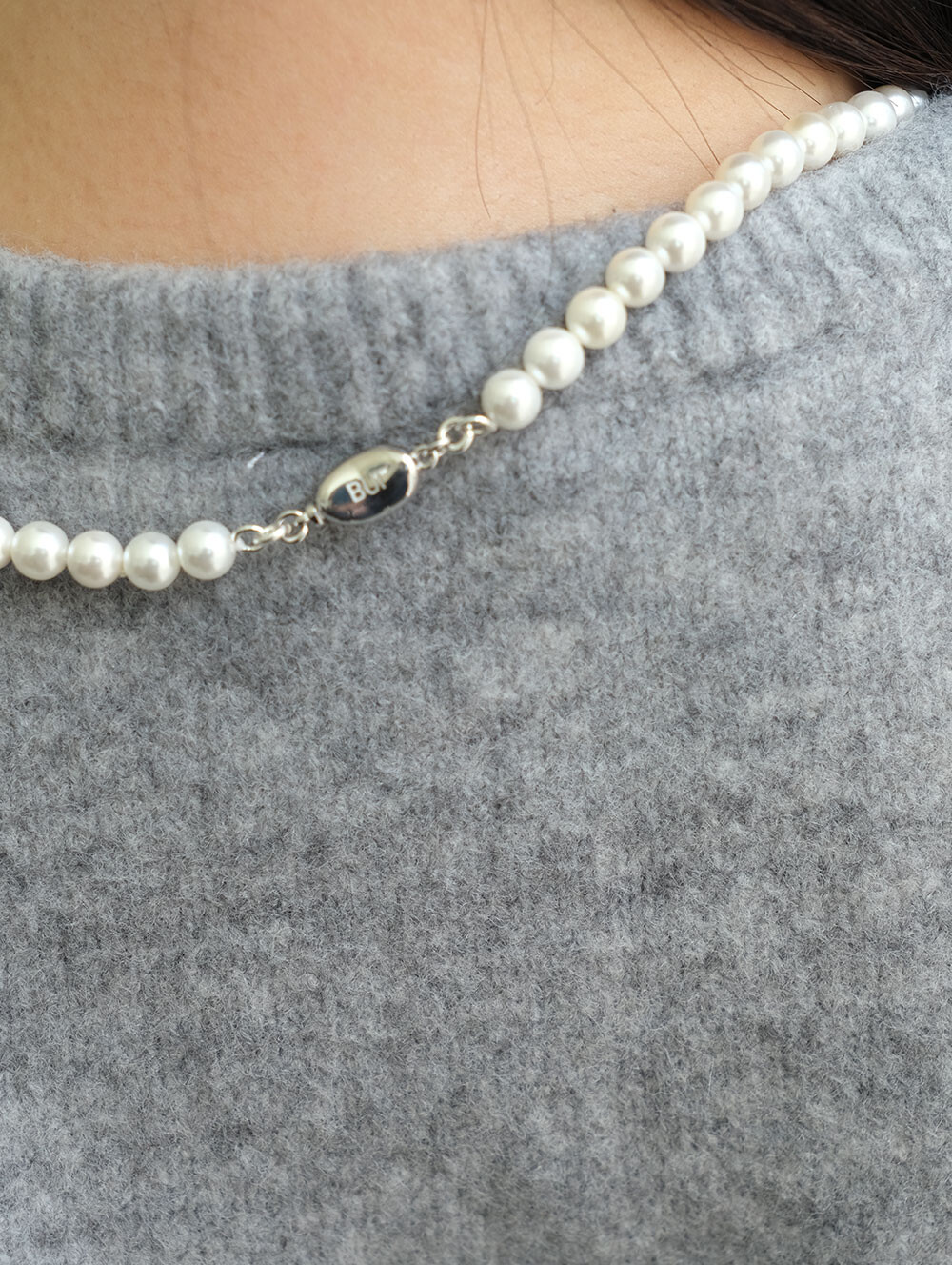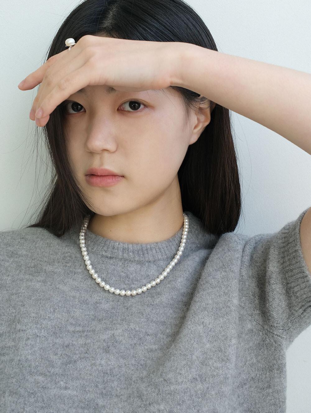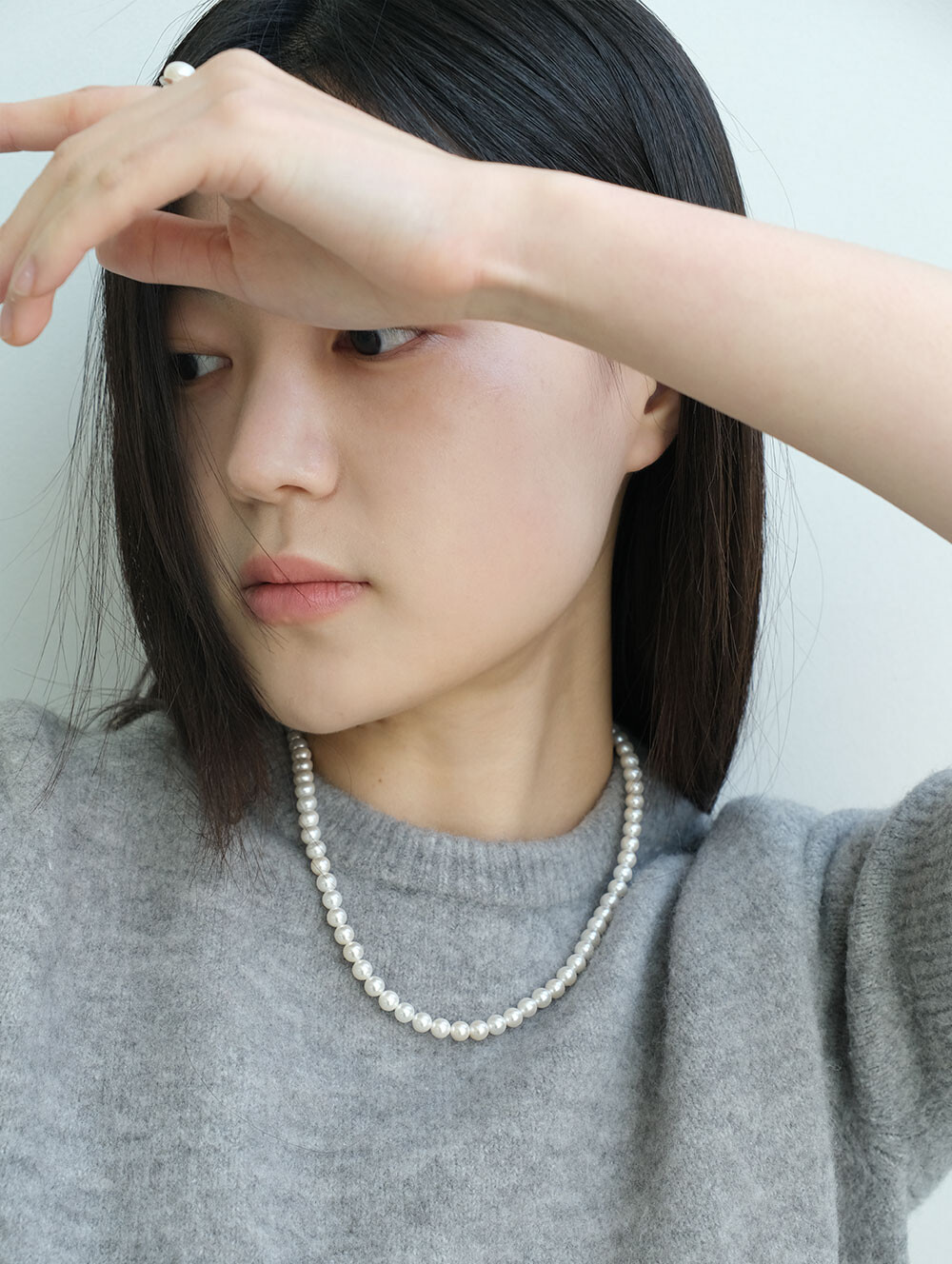 진주 고유의 은은한 광택감이 돋보이는 프리미엄 핵진주 네크리스. 사계절 내내 클래식한 멋으로 함께하기 좋은 피스이며, 조금 더 편안한 착용을 위해 누름 장식으로 제작되었습니다.