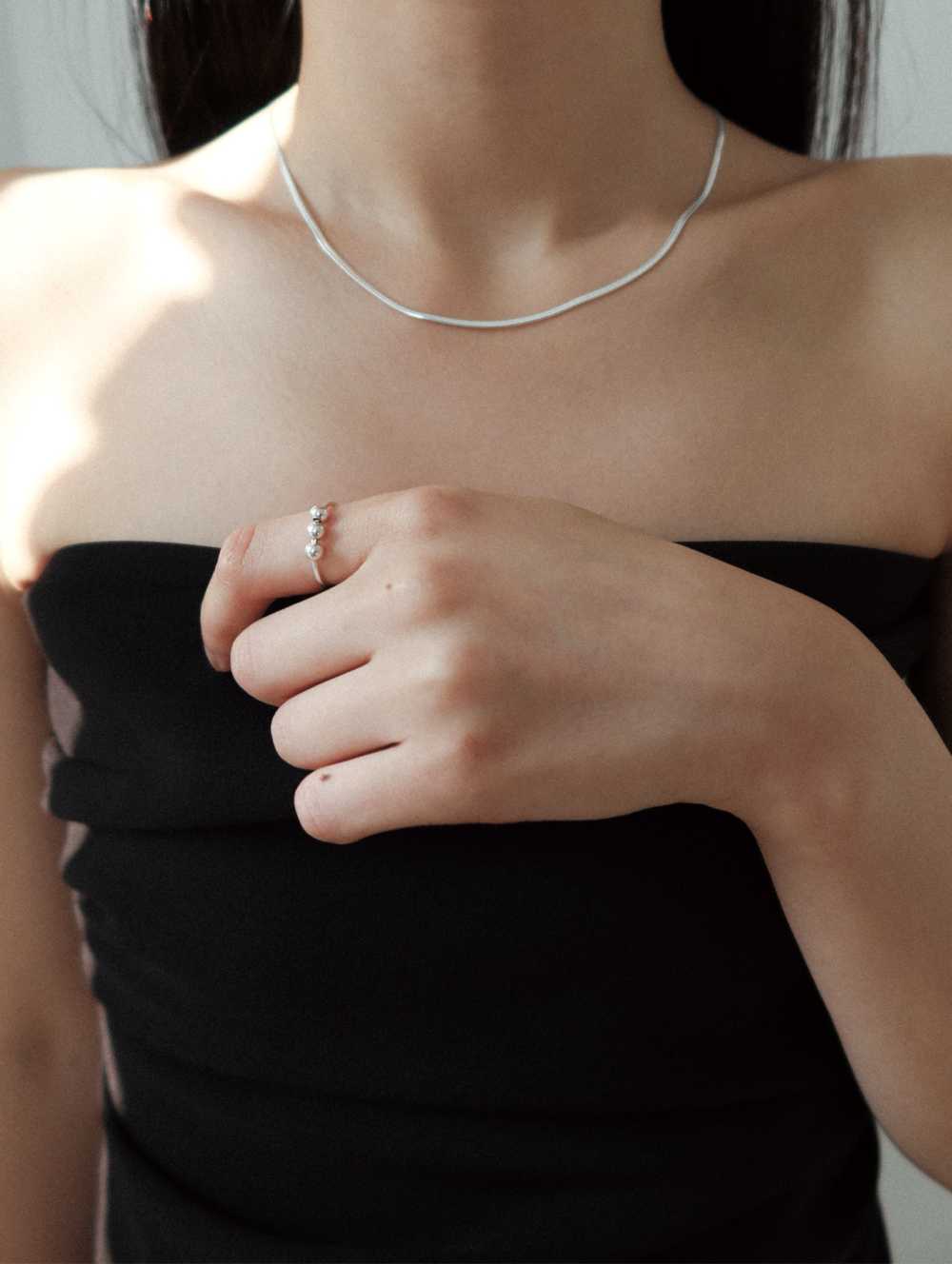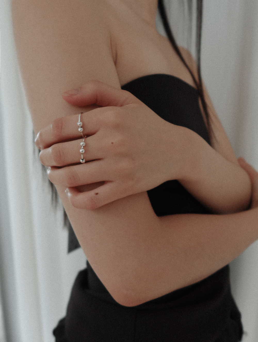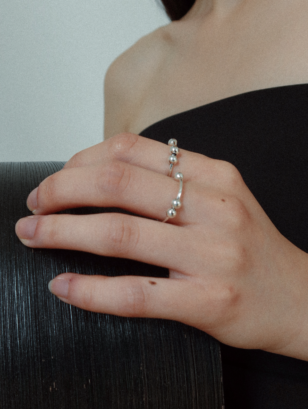 세 개의 실버 볼이 링을 감싸는 디자인의 링. 링을 따라 자유로이 움직일 수 있는 실버 볼로 인해 다양한 실루엣 연출이 가능한 제품입니다.