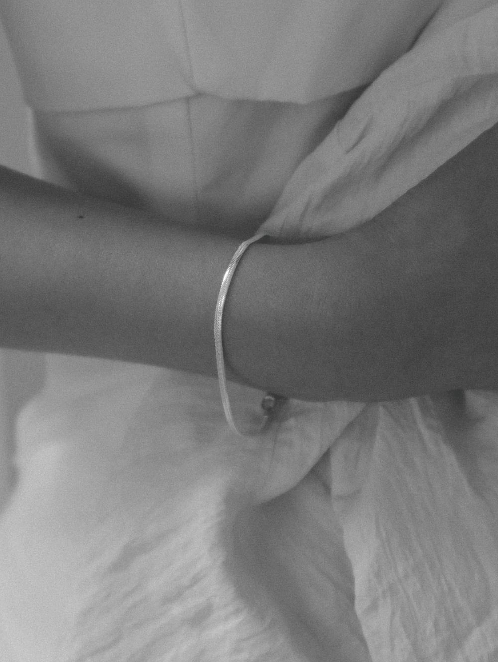 2.5mm 두께의 커빙 짜임으로 제작된 스네이크 체인 브레이슬릿. 광택이 우수한 이태리 수입 체인을 사용하였으며, 단독 착용은 물론, 레이어드 스타일링에도 활용도 높은 제품입니다.
