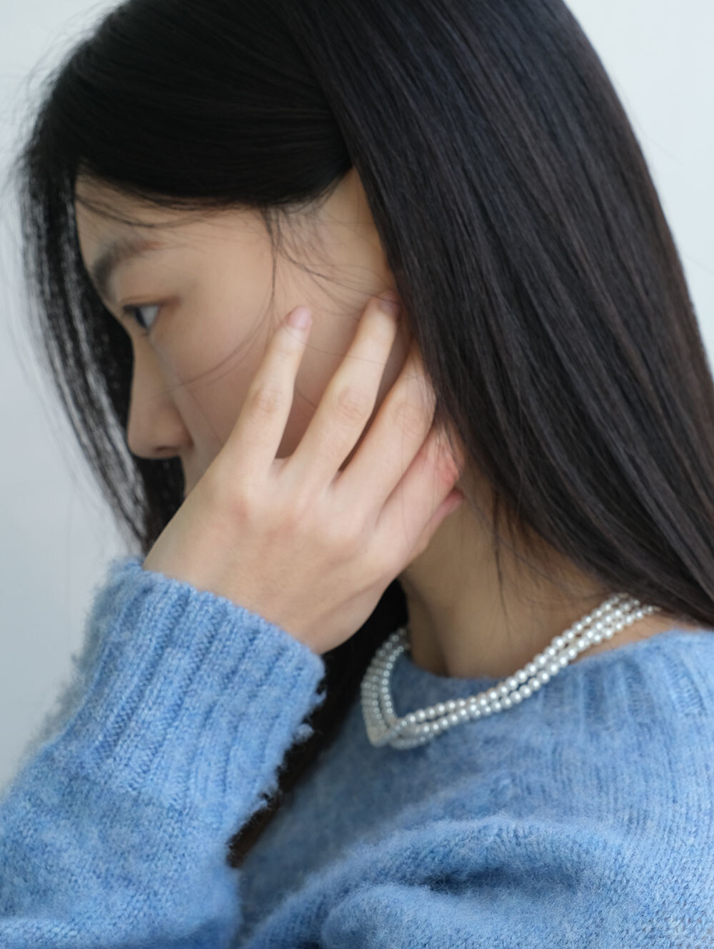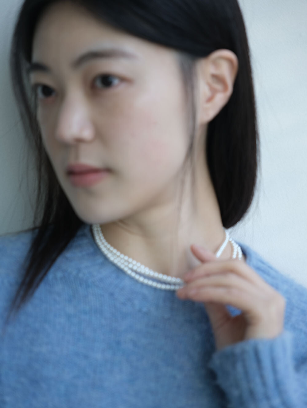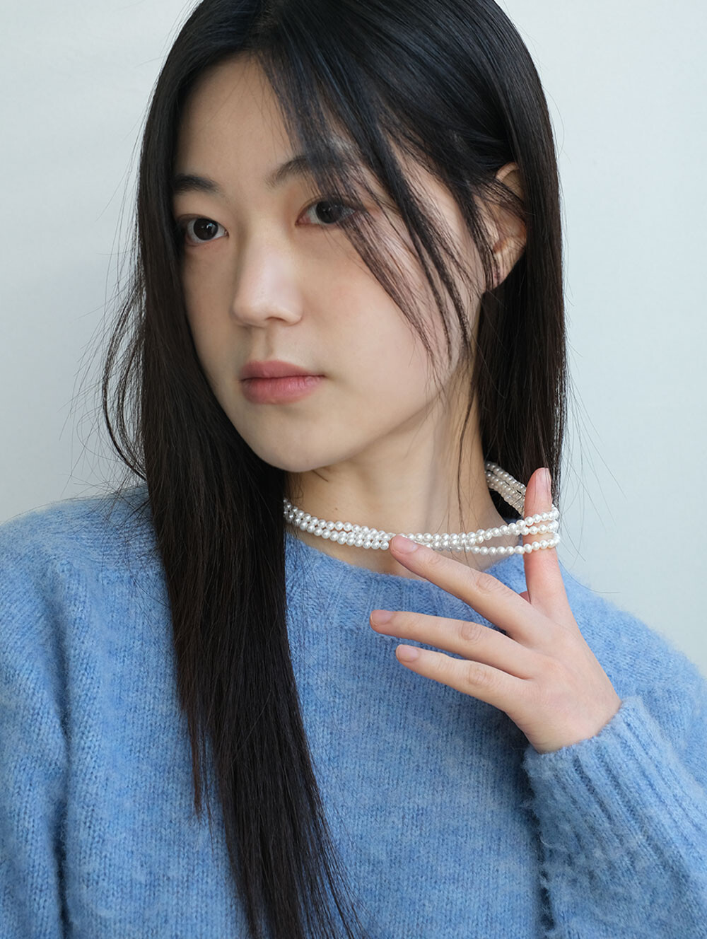매끄러운 광택감의 4mm 핵진주가 3줄로 연결된 네크리스. 한층 더 풍성한 실루엣으로 다양한 아웃핏에 쿨한 연출이 가능합니다. 브랜드 각인된 팬던트가 행잉되어 있습니다.