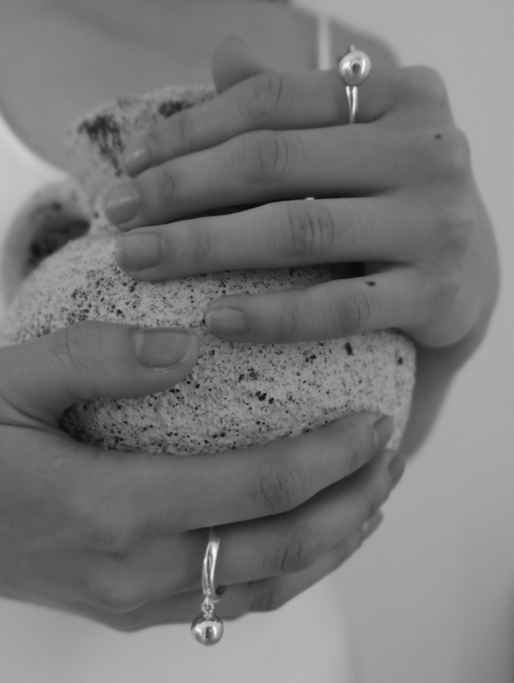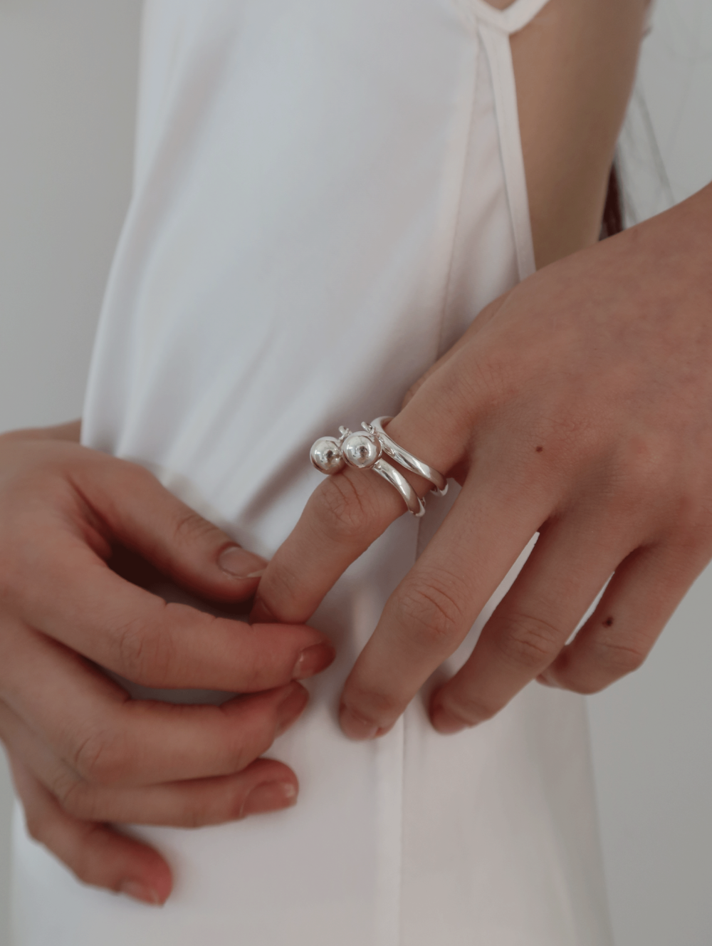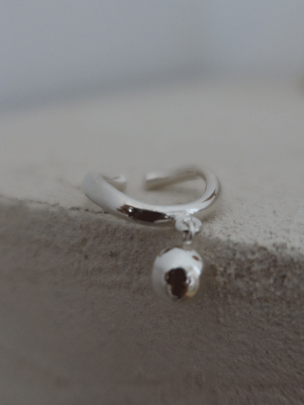 유연한 곡선 라인을 이루는 오픈 링입니다. 8mm 볼이 행잉되어 있어 볼드한 링의 두께와 밸런스를 이루며, 제품의 감도를 높인 제품입니다.