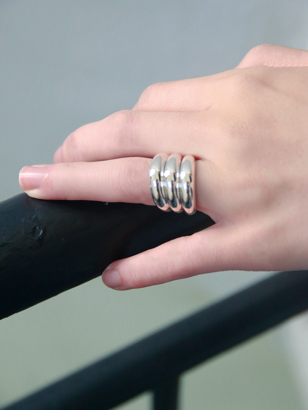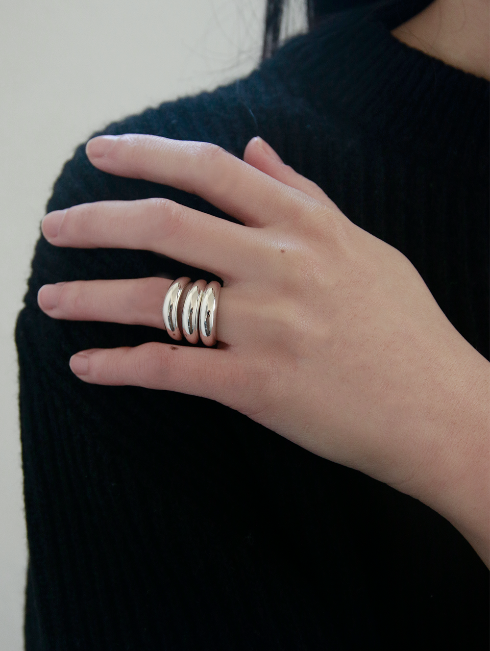 세 개의 5mm 링이 연결된 디자인입니다. 볼륨있는 실루엣으로 독보적인 멋이 전해지며, 단독 착용은 물론 레이어드 착용 시에도 다양한 포인트를 줄 수 있는 제품입니다.