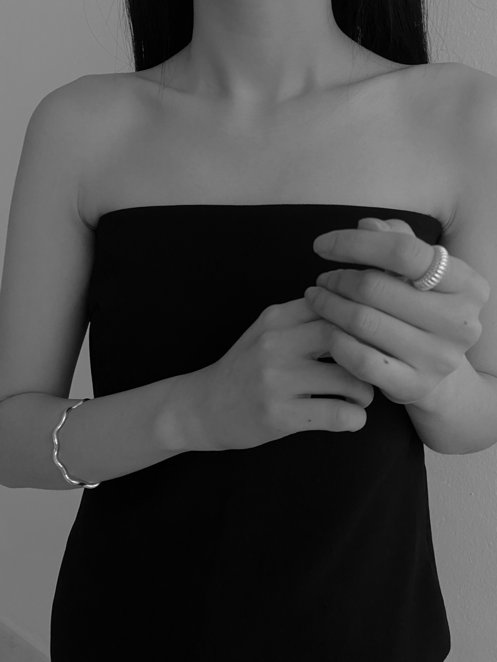 유려한 곡선이 더욱 돋보이는 볼드한 두께의 뱅글.